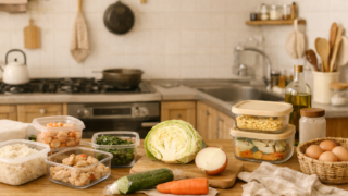 作り置きを活用しながら、無理なく回す共働き夫婦の一週間献立を紹介。魚料理やむね肉の主菜、週半ばの作り置きまで、平日の夕ご飯づくりが楽になるリアルな献立記録です。
