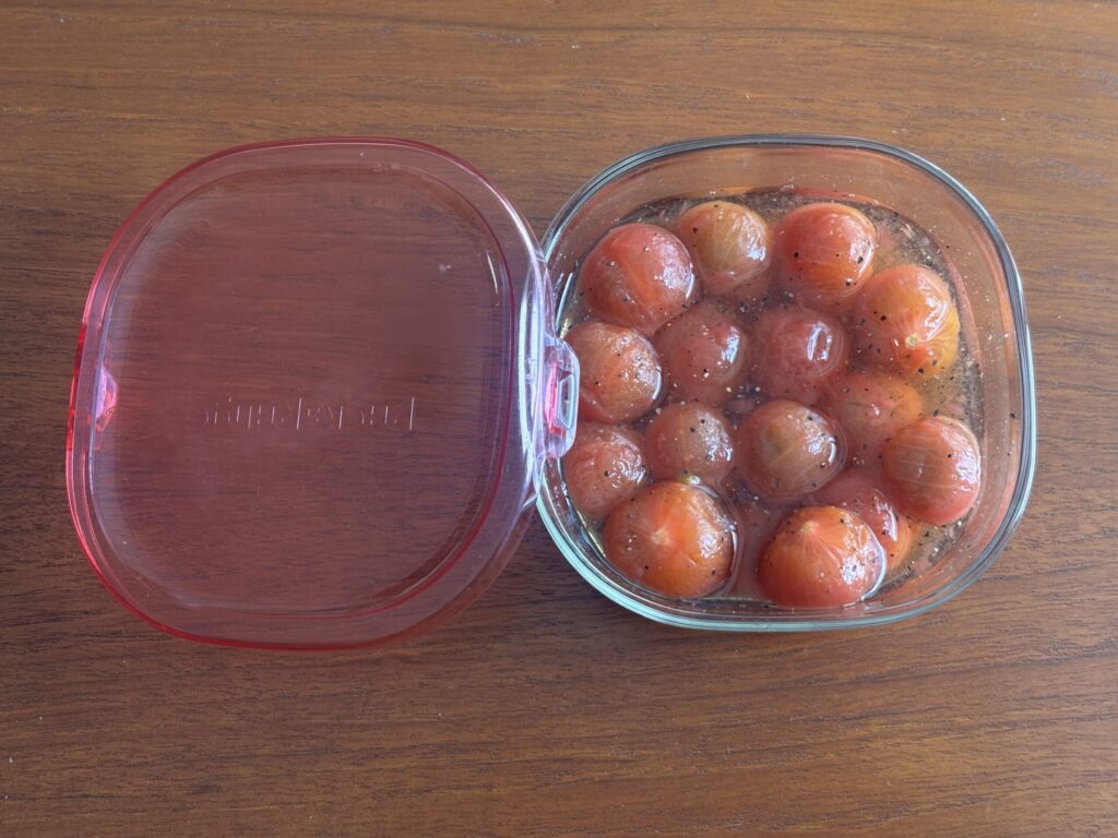 トマトのマリネサラダは翌日の方が味が染みて美味しかったです。