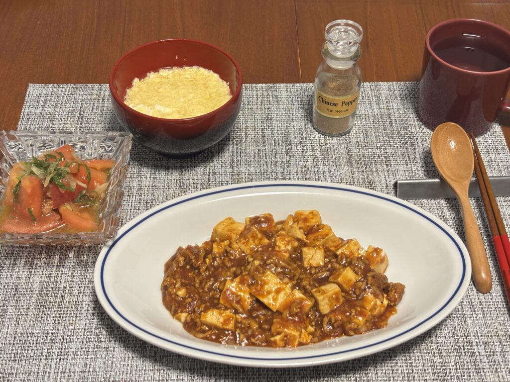 昨日食べる予定だった麻婆豆腐を主菜にした献立。麻婆豆腐の献立はこの陳先生のレシピが我が家の一番お気に入りの味でした。